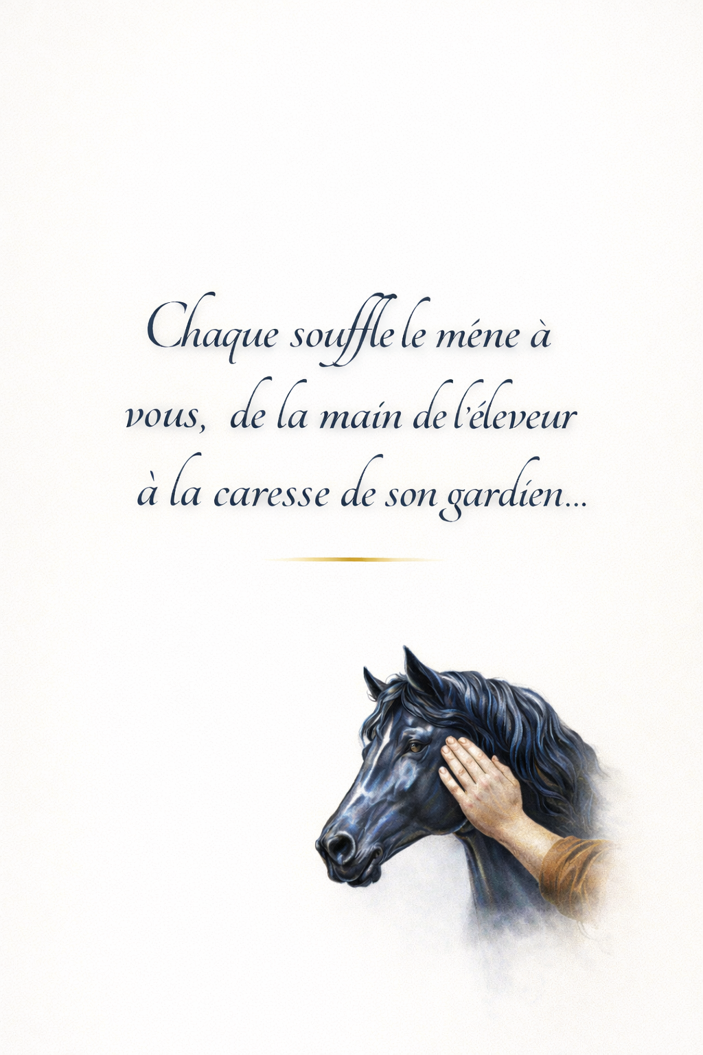 Partagez plusieurs jours à son côté, laissez vos mains apprendre le langage silencieux du cheval que vous avez choisi. Dans cette communion quotidienne, se tisse le fil invisible qui unit Gardien et Gardé.