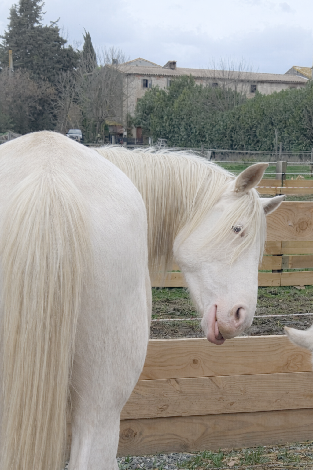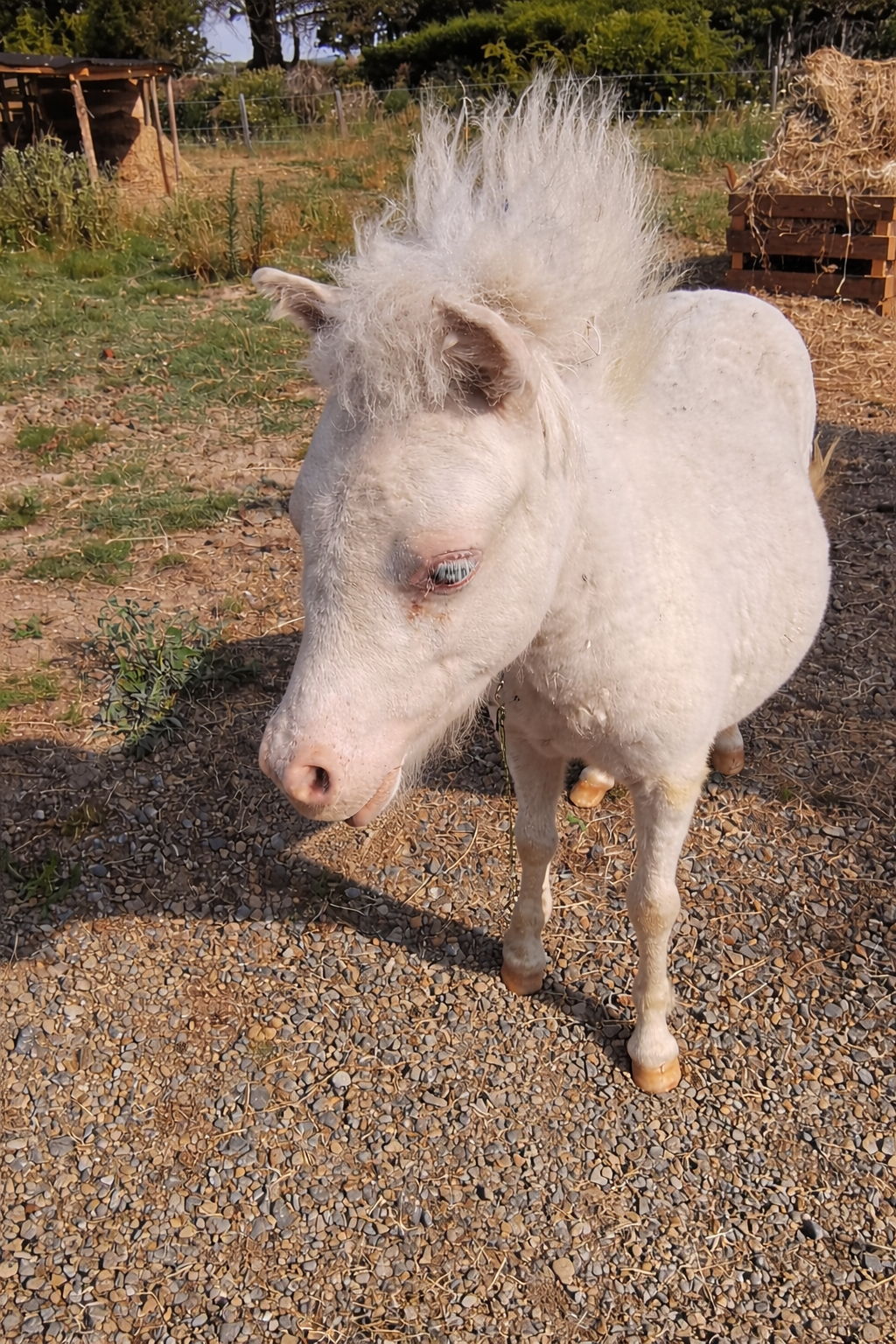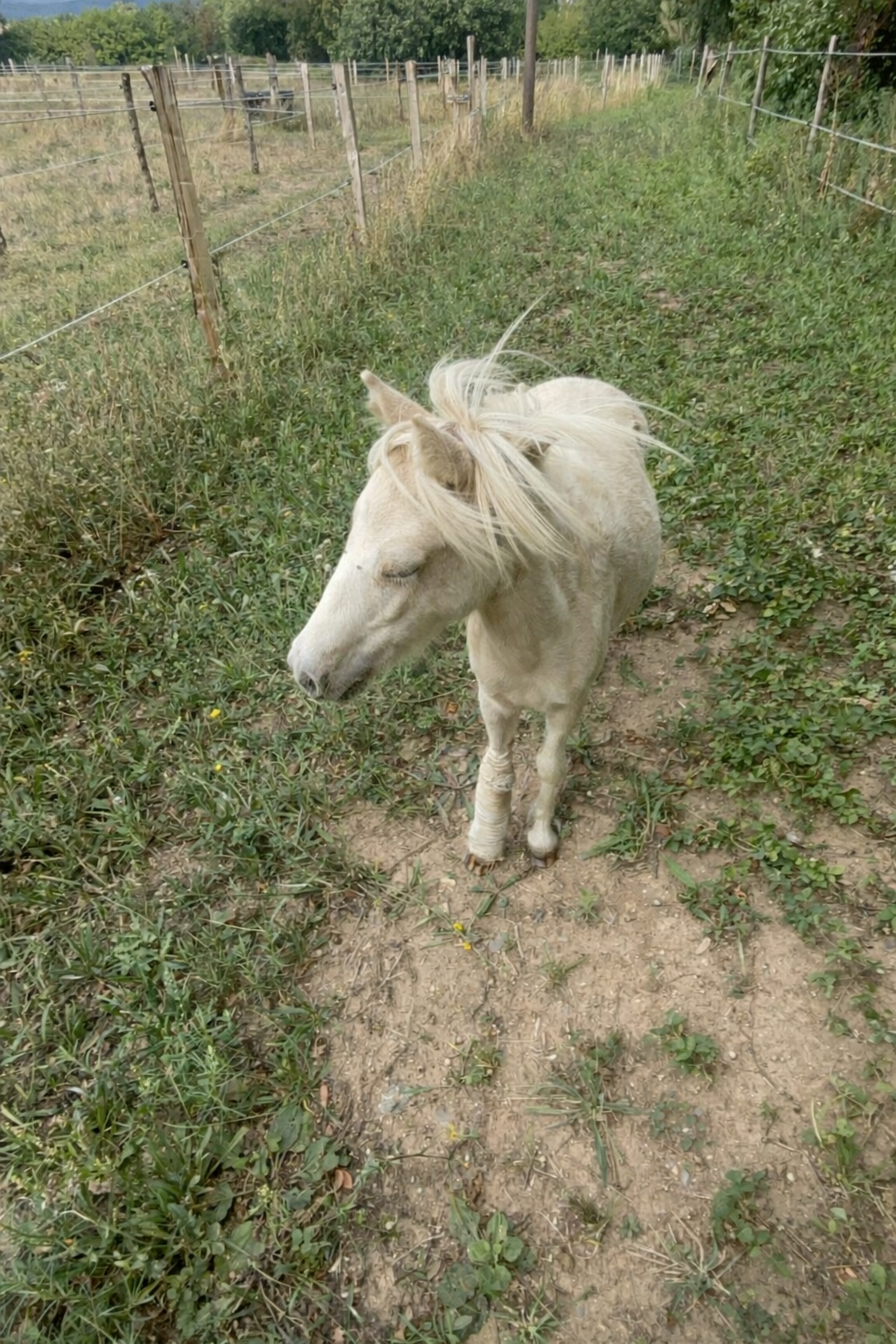 Très discrète, attachée à son Gardien, douce et dominée au troupeau, elle transmettra à ses poulains ses magnifiques yeux bleus et sa délicatesse.