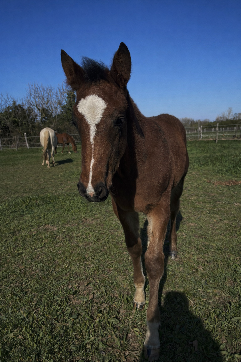 Petit étalon très bien éduqué, très gentlemen avec ses juments, vit en troupeau, parfaitement codé, il est vif, intelligent, très proche de l’humain et très respectueux.