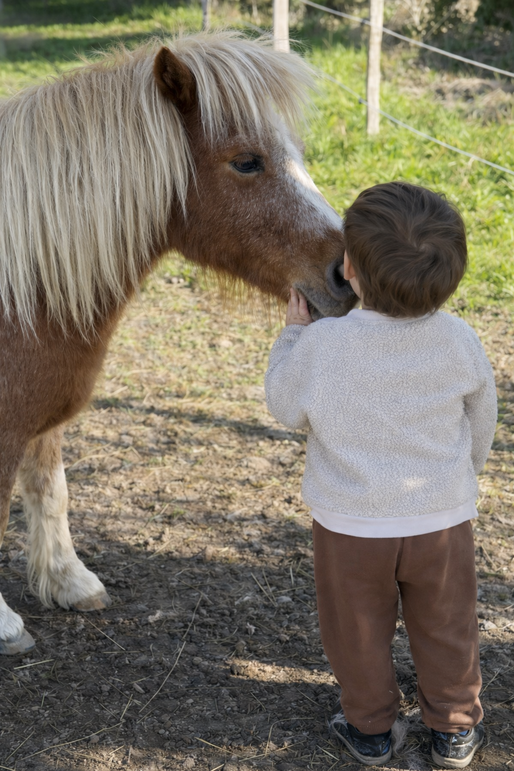 Petit étalon très câlin et tactile, un gros nounours hyper calme, d’une gentillesse folle qui fait fondre les cœurs, très proche de l’être humain et respectueux. Parfaitement adapté pour être manipulé par des enfants.