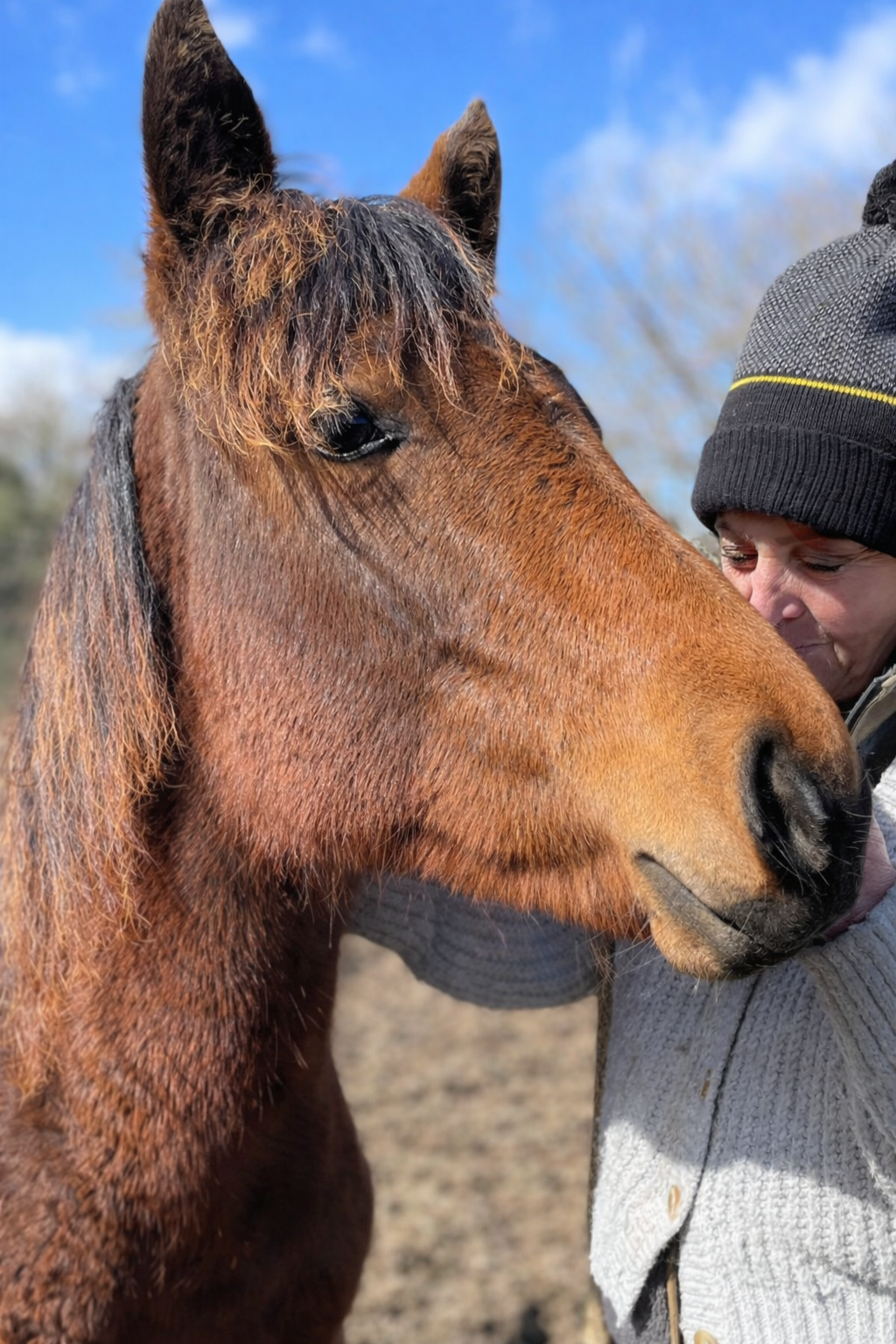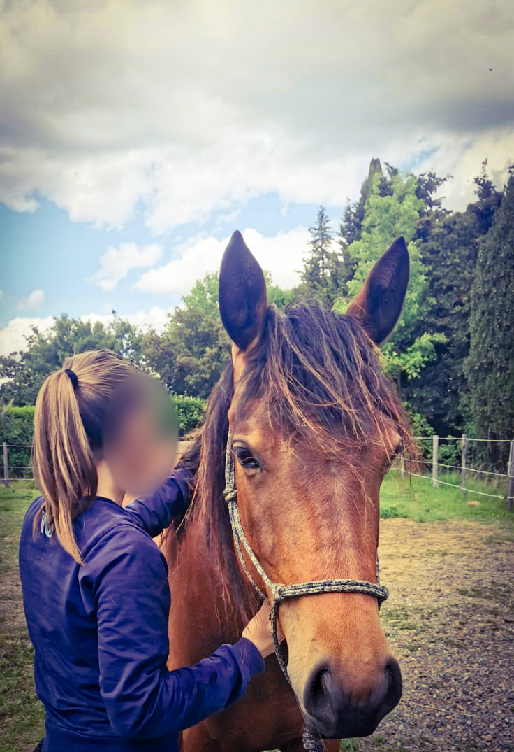 Neelas une jument très attachante, douce, calme, intelligente, mature. Très câline avec son humain, voire « pot-de-colle ».