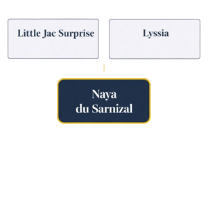 On retrouve dans sa lignée du demi sang-arabe et du cheval de spectacle. Sisko, son papa, était une star au Puy Du Fou. Ses poulains pourront tout à fait convenir pour du dressage ou du spectacle.