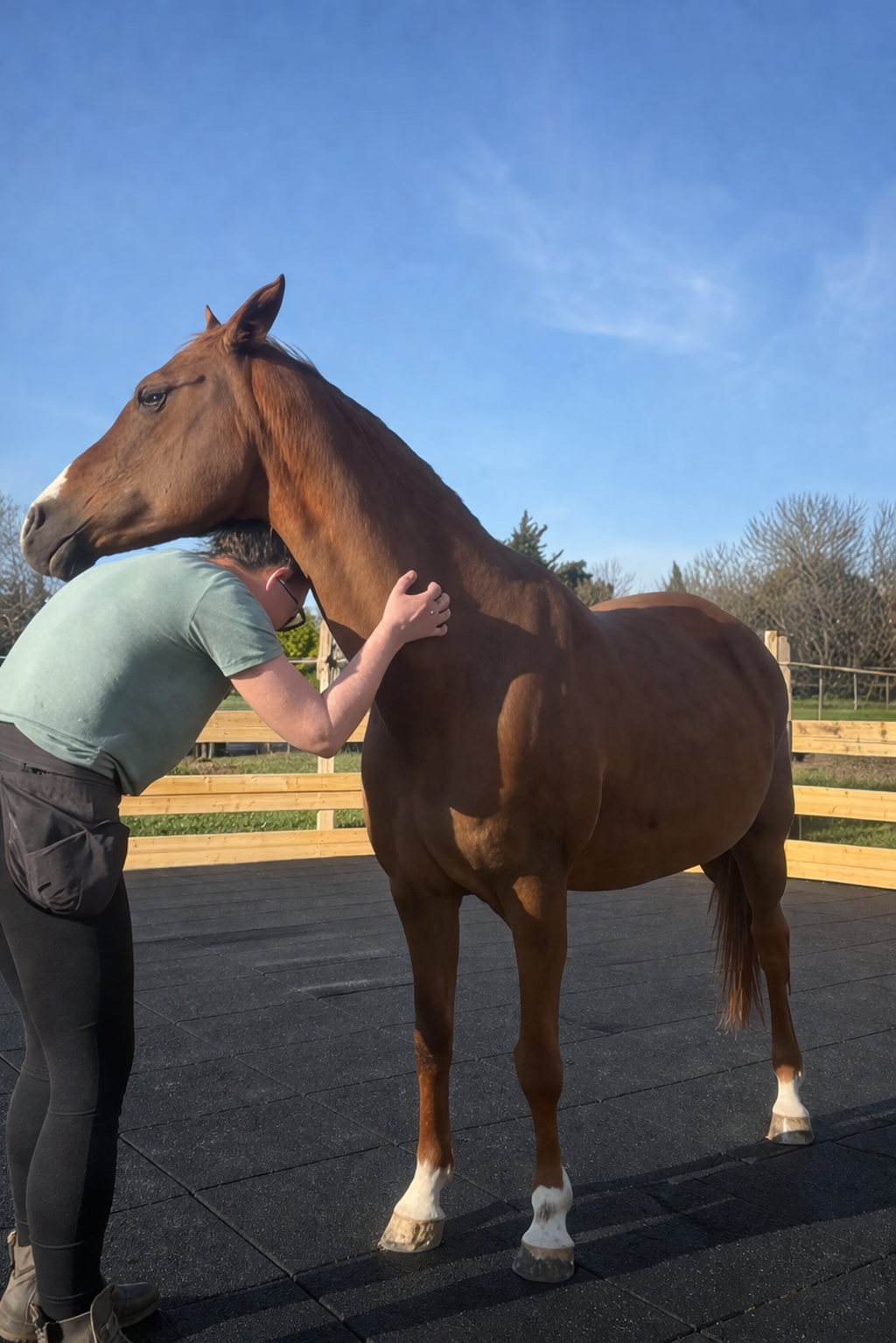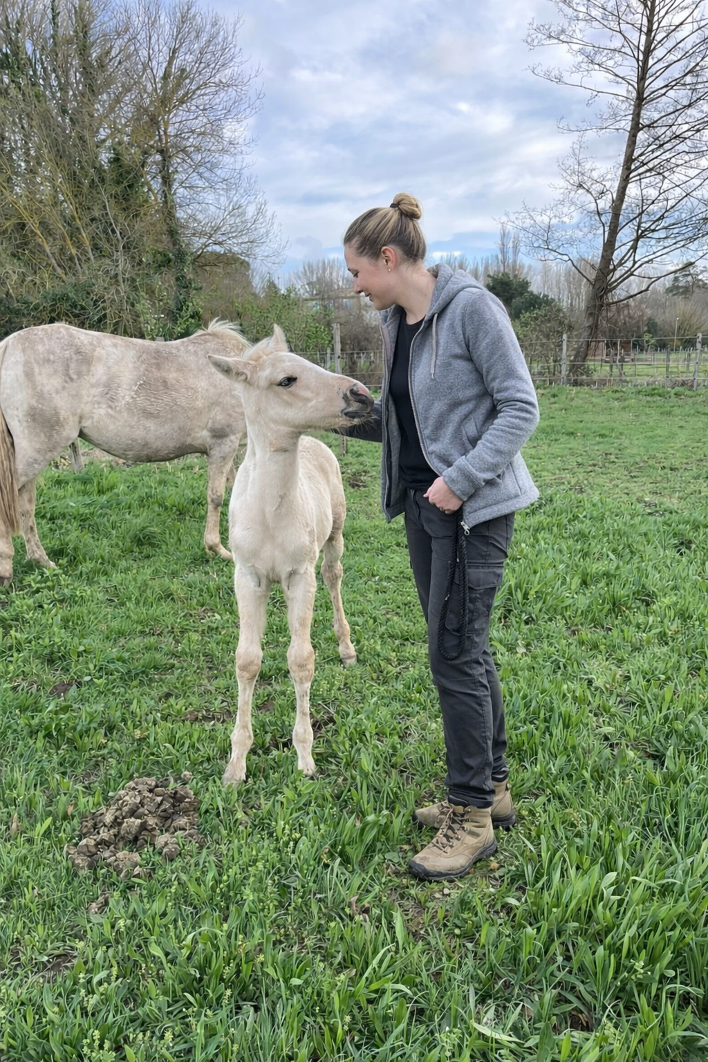C’est ainsi que, Aux Jardins de Kyra, nous proposons des poulains qui, au moment de leur départ, sont pucés, vaccinés et identifiés, et qui auront déjà rencontré les différents corps de métier intervenant dans leurs soins. Tout cela repose sur une relation construite autour de la confiance, du respect et d’un consentement non intrusif, afin de préserver leur équilibre physique, émotionnel et comportemental.