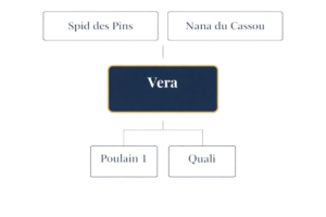 Vera est la doyenne du cheptel, tant dans son attitude que son âge : une dominante juste avec ses congénères qui maintient un équilibre dans la hiérarchie du troupeau. Jument de volonté, intelligente et rationnelle, elle transmets à ses poulains sa force de caractère, son tempérament de leader et son encrage. Jument de sport, course et endurance, rien ne lui fait peur – ses poulains sont très curieux, vifs, et joueurs.
